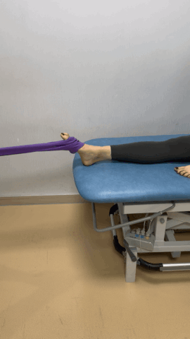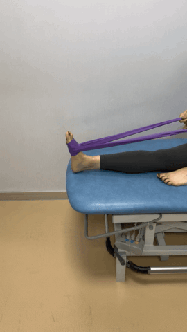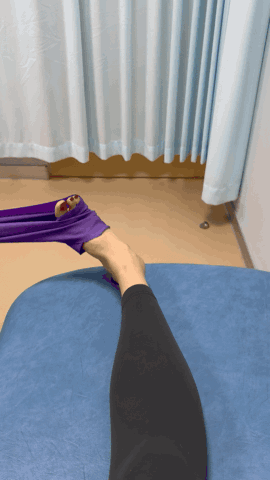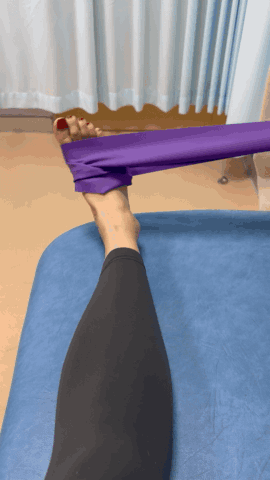 训练时,将弹力带一端固定在牢靠的位置,另一端绑在前脚掌,以脚踝为轴,向上、下、左、右及斜向等八个方向发力,仿佛画出一个“米”字。