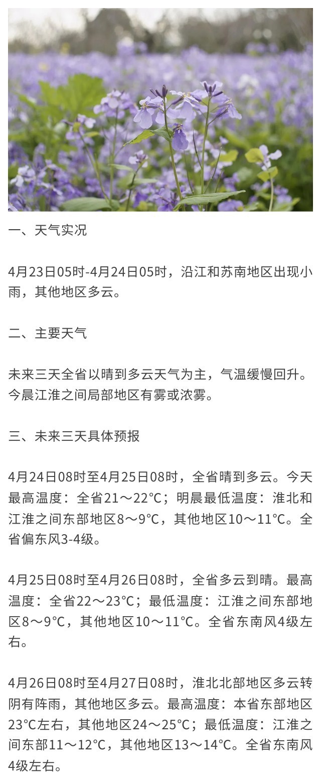未来三天江苏以晴到多云天气为主,气温缓慢回升