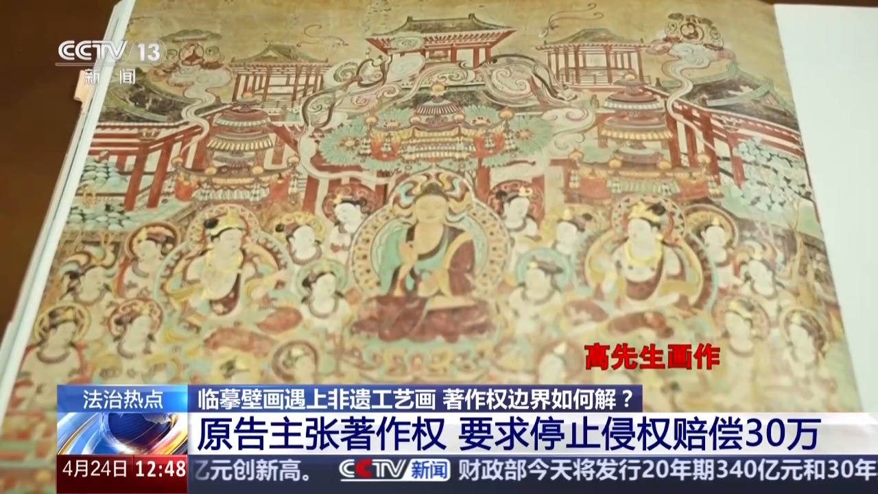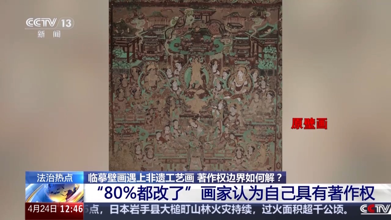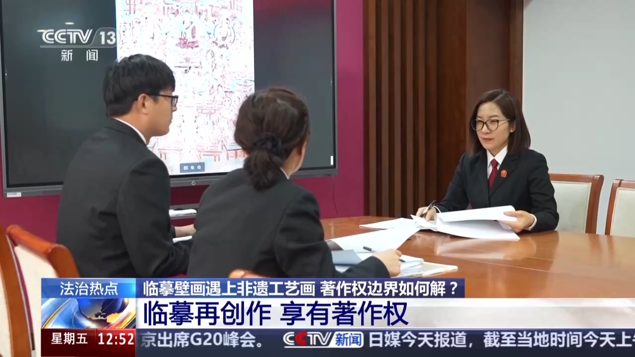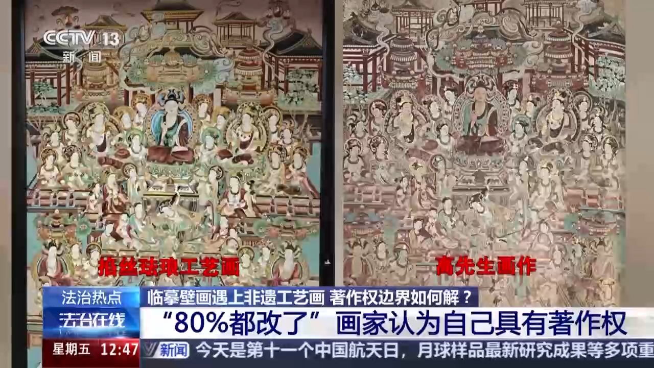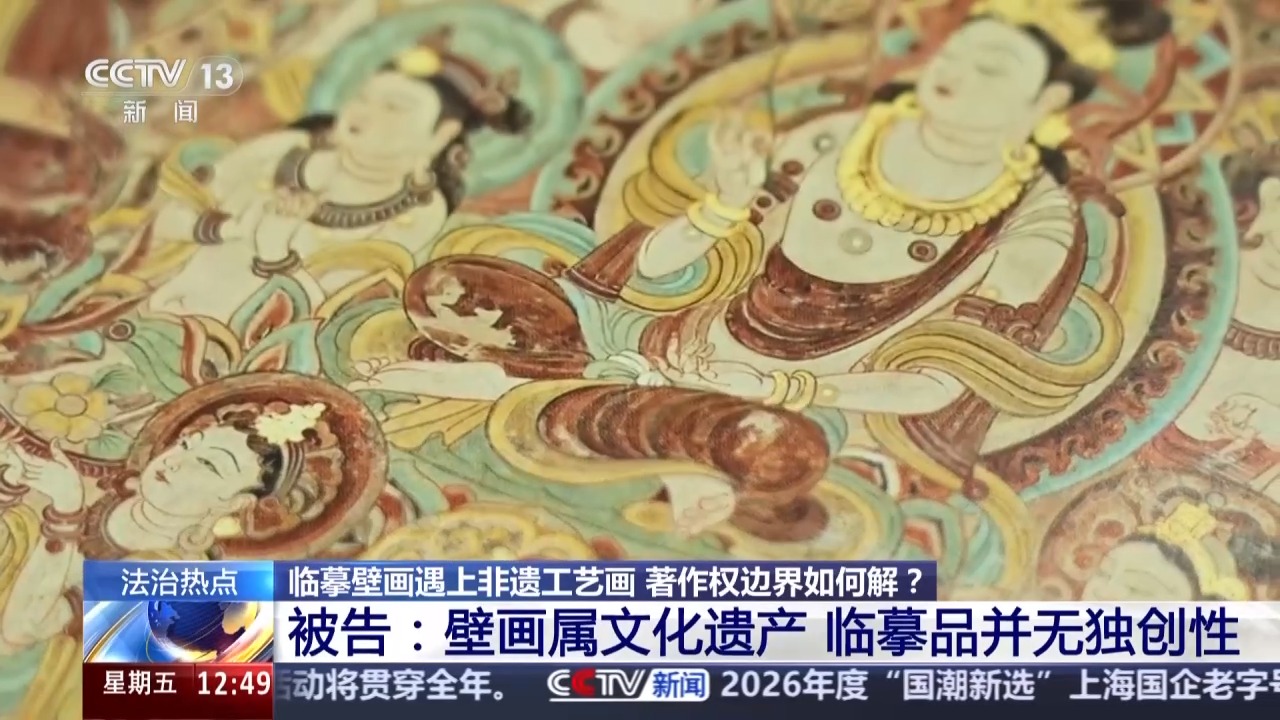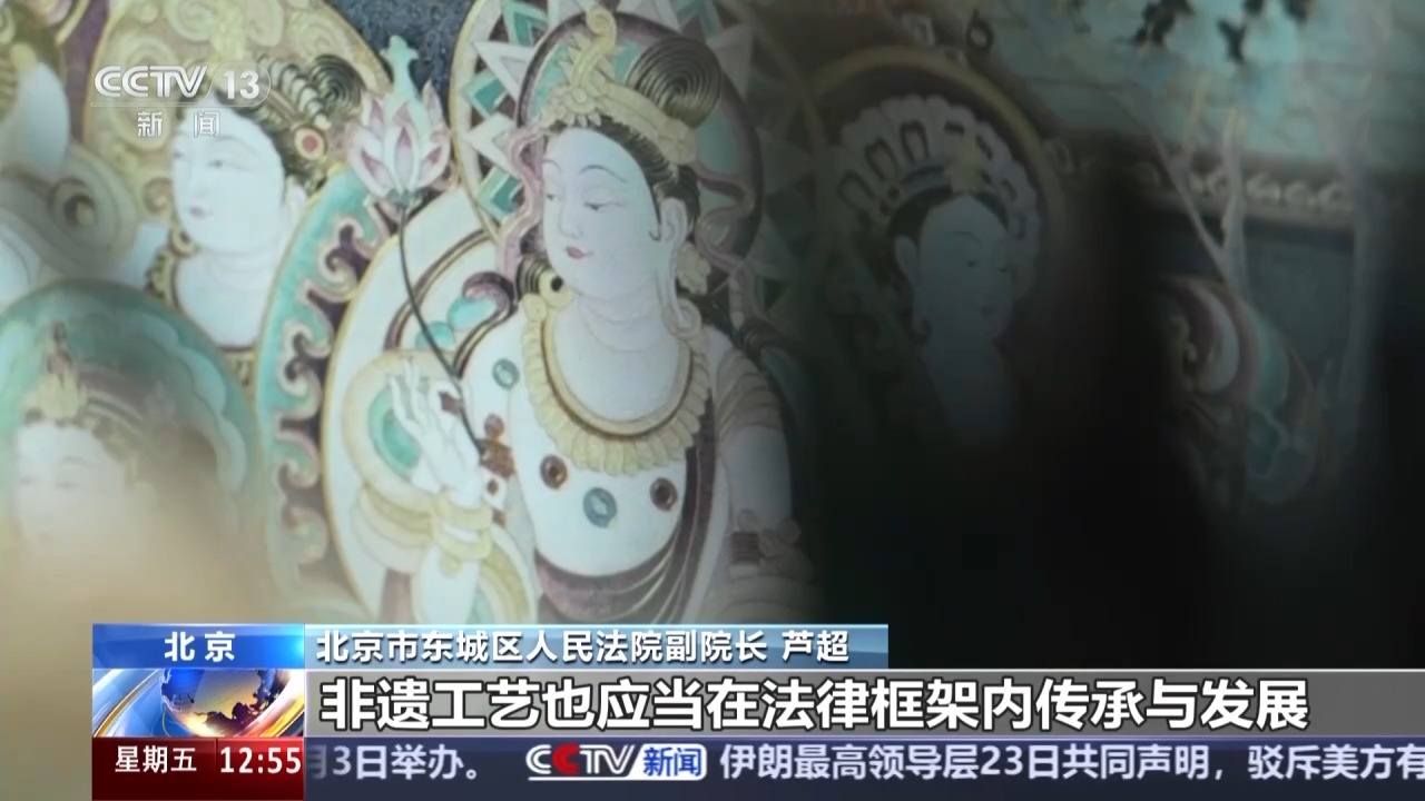 北京市东城区人民法院副院长 芦超:这个案件明确了两点,一个是对于已经进入公有领域的壁画等文化遗产临摹再创作的,享有著作权;一个是未经许可擅自使用他人作品,侵犯著作权,非遗工艺也应在法律框架内传承与发展。我们既依法保护创作者的智力成果,也积极护航非遗技艺的延续。司法实践告诉大家,通过事先授权、联名开发等合法方式,才能实现原创作者与非遗匠人的合作共赢。