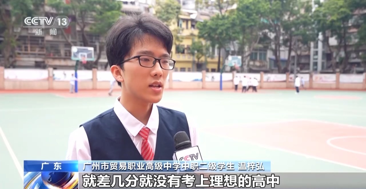 温梓弘所在的广州市贸易职业高级中学,是2024年广州市首批5所综合高中试点校之一。高一学年结束时,普通高中学籍和中职学籍的学生,可以自愿申请互转。2025年,这所学校共有10名学生成功实现了学籍互转。