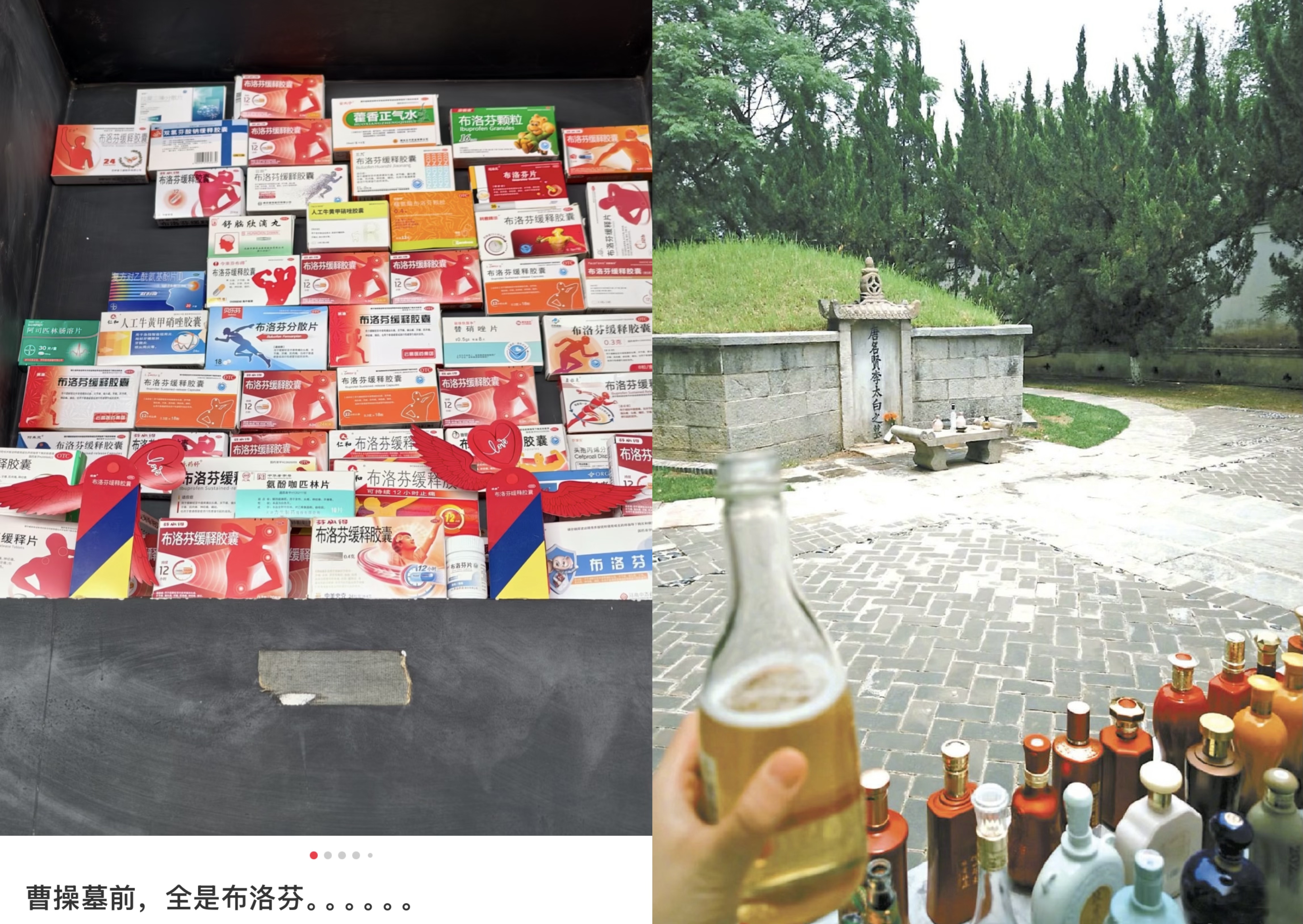 清明节扫墓祭祖时,有一群年轻人去给“地下偶像”扫墓:在曹操坟前放布洛芬,希望能治好他的偏头痛。在南唐后主李煜的墓旁,带一捧来自南京的土。诗仙李白的墓前,可能是世界名酒种类最全的地方。