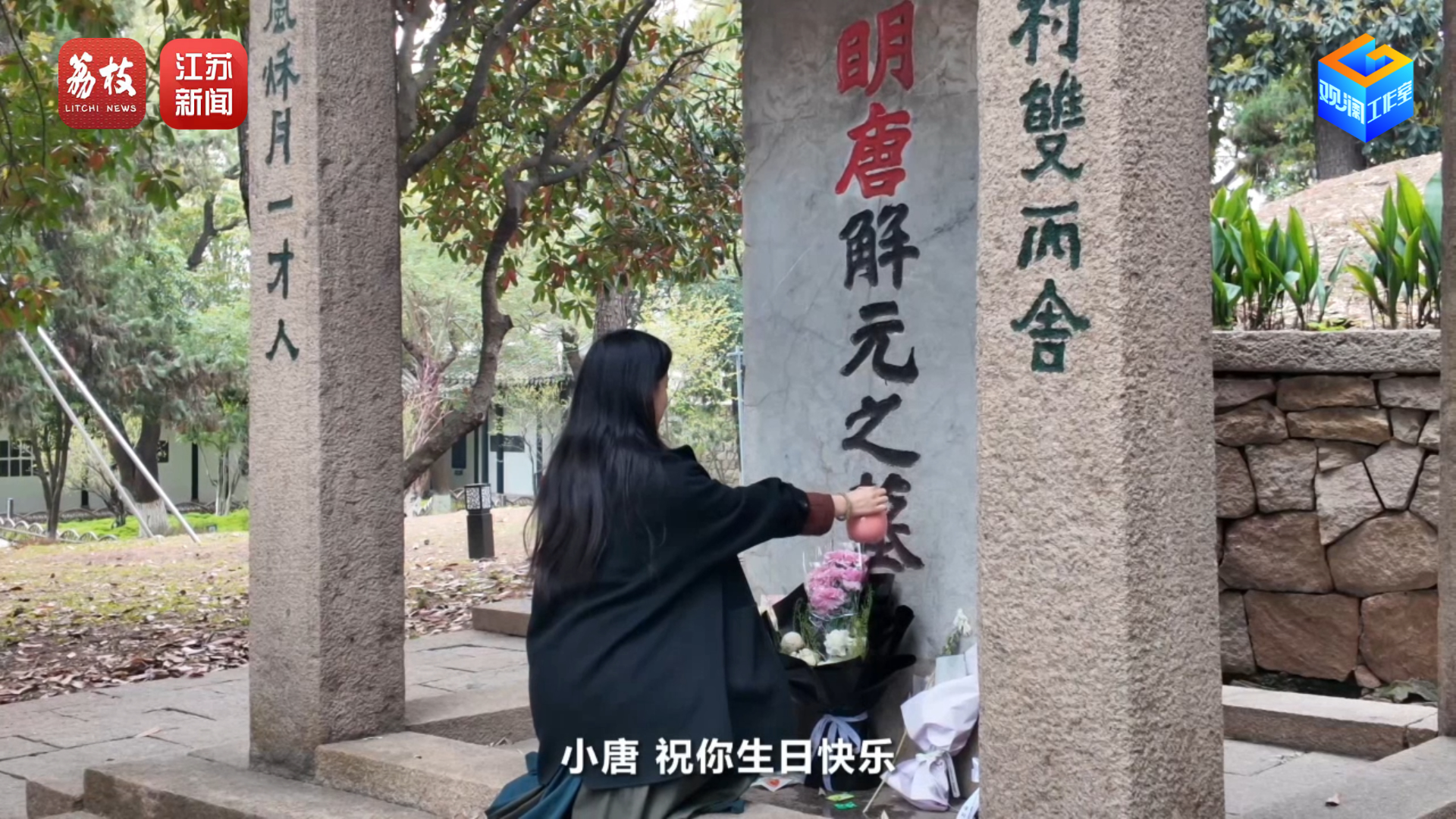 “小唐,生日快乐”,在古人坟前,这样的祭扫语很少见,就像里面躺着的是个老熟人。记者还偶遇了两个从上海来的女孩给唐伯虎带了蛋糕,放生日歌。没有香烛,没有纸钱,女孩们像赴约一样轻松,而没有寻常扫墓的凝重。