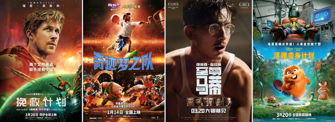 3月20日与北美同步上映的科幻电影《挽救计划》讲述太阳面临危机,一名宇航员在浩瀚宇宙中与外星伙伴携手拯救地球的故事,截至目前国内票房已达1.56亿。此外,《河狸变身计划》《非穷尽列举》《至尊马蒂》《奇迹梦之队》等影片也持续受到市场关注,共同丰富了银幕供给。