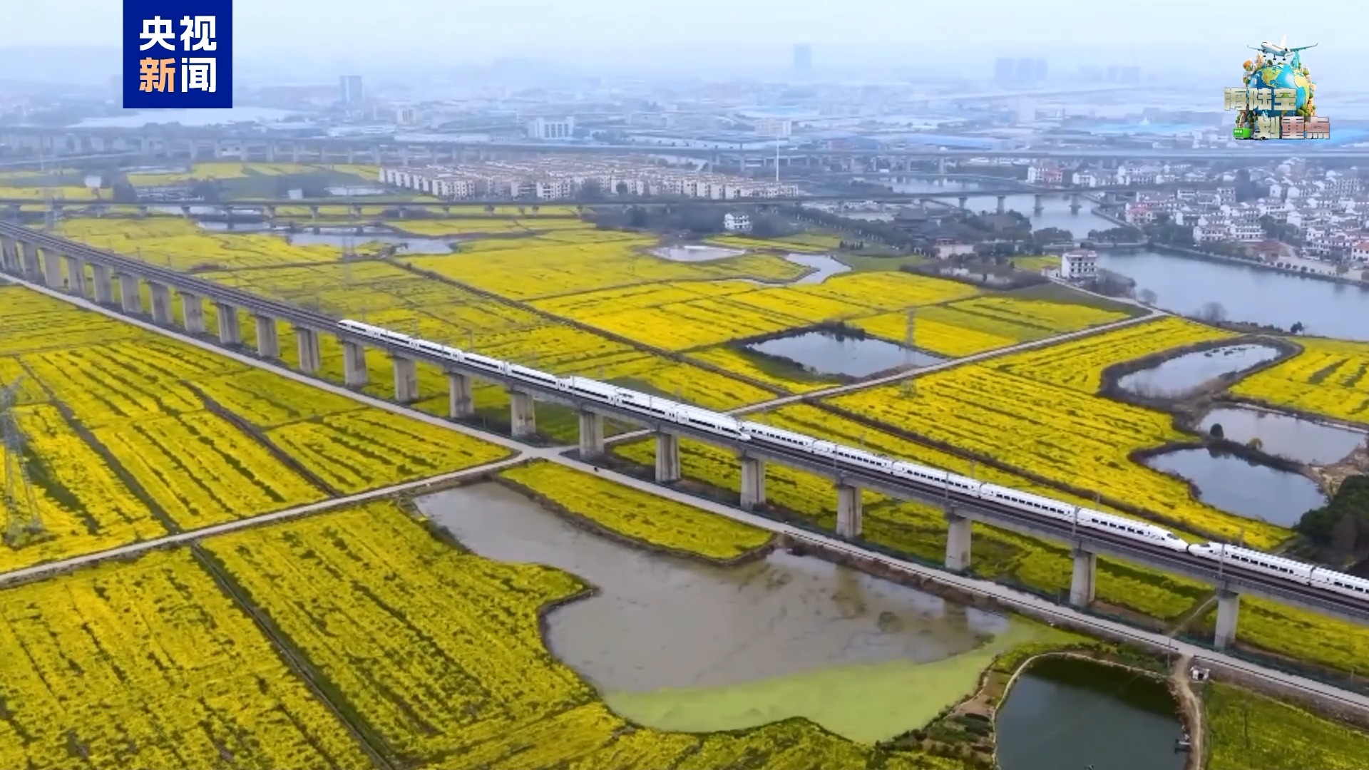 春风拂过,列车在花海穿行,化作流动的画卷。作为我国分布面积最广的春日花卉,油菜花在陕西汉中、江西婺源等地铺展成一望无际的金色海洋。西安开往汉中的“赏花专列”,高峰时段每6分钟便有一趟车,全力保障“快旅慢游”。
