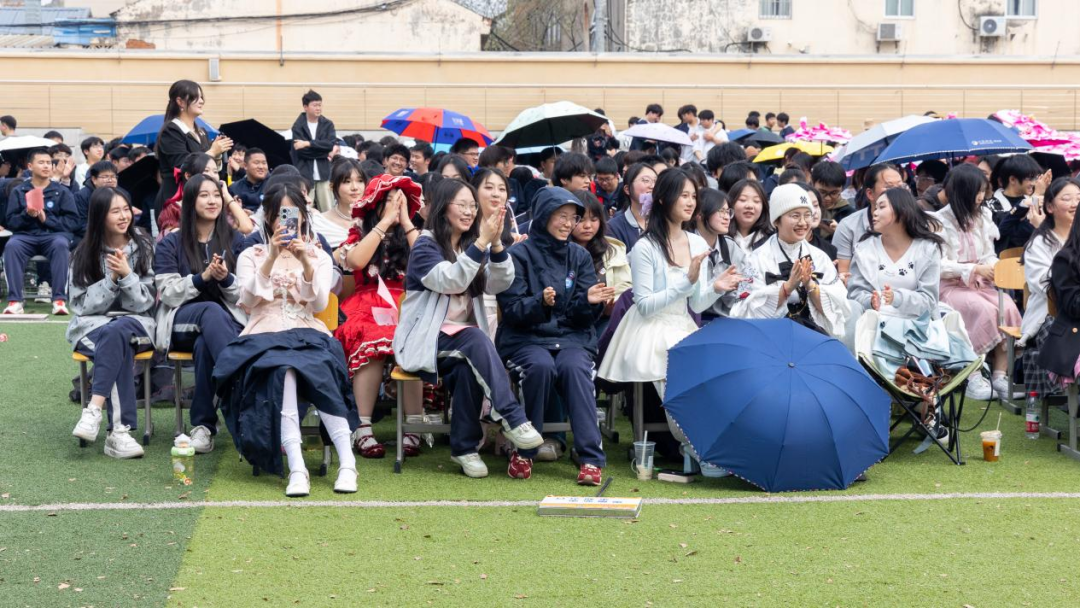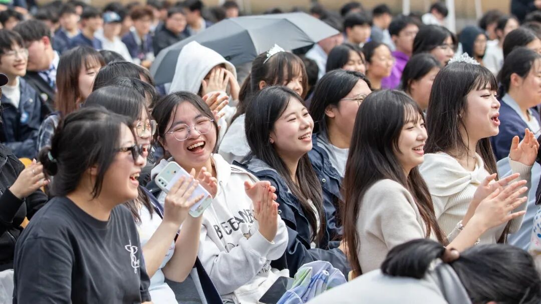 14位班主任依次登台寄语,南京江宁高等职业技术学校老师董洪广为同学们献唱歌曲。