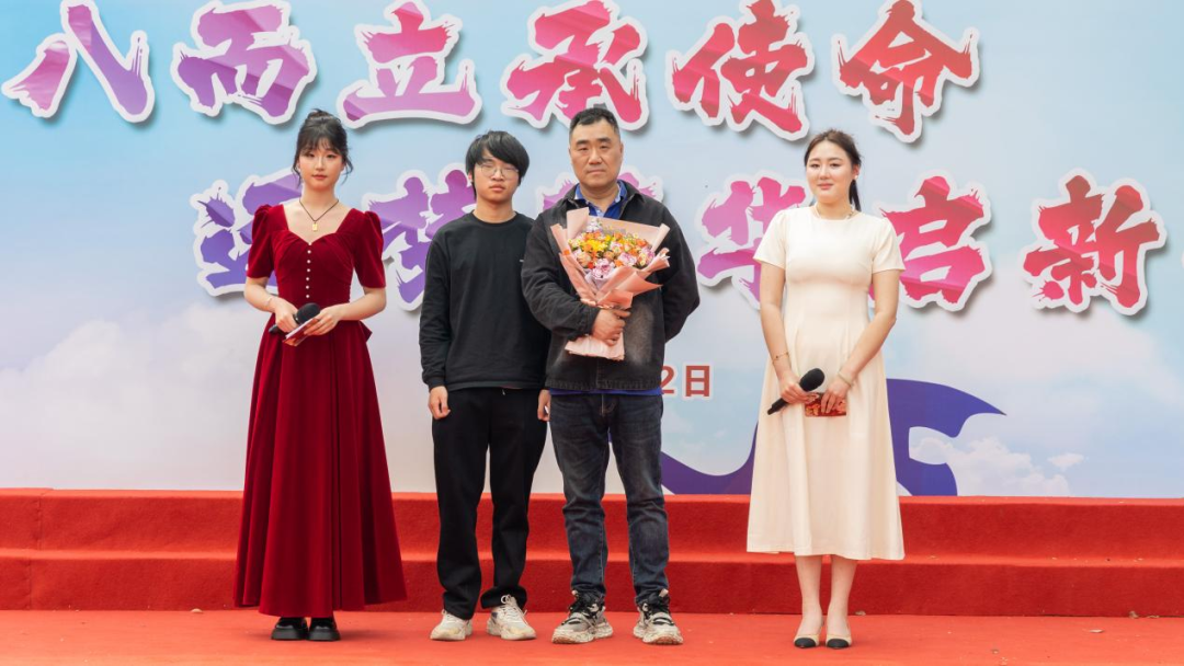 家长代表发言,提出“感恩、坚持、从容”三点寄语;南京江宁高等职业技术学校学生叶锦瑞向父亲献花致谢。