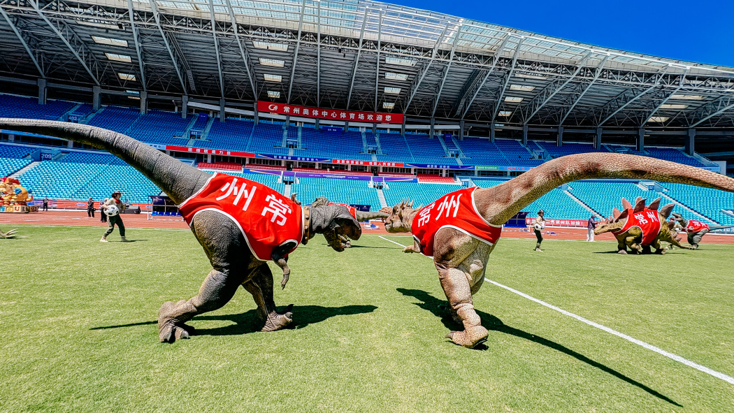 如今,远古霸主彻底不藏了,本届“苏超”首秀,它们将带着新伙伴回归赛场。届时,30米的华丽羽王龙和似鸟龙将在常州奥体低空掠过球场,龙身压顶、俯视全场,巨兽过境的那一刻,奥体中心瞬间变成亿万年前的龙栖之地。“常宝”“恐龙妹妹”这一对城市顶流CP也将携手亮相,召唤远古好友集结绿茵,为常州队、为“苏超”呐喊助威。