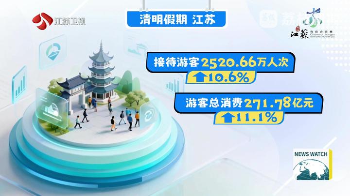 据江苏智慧文旅平台监测,清明假期,全省纳入监测的文旅场所共接待游客2520.66万人次,同比增长10.6%;游客总消费271.78亿元,同比增长11.1%。银联商务数据显示,首个“春假+清明”小长假,全省银联渠道异地文旅消费139.61亿元,同比增长13.55%,占全国文旅消费总额的11.13%,保持全国第一。