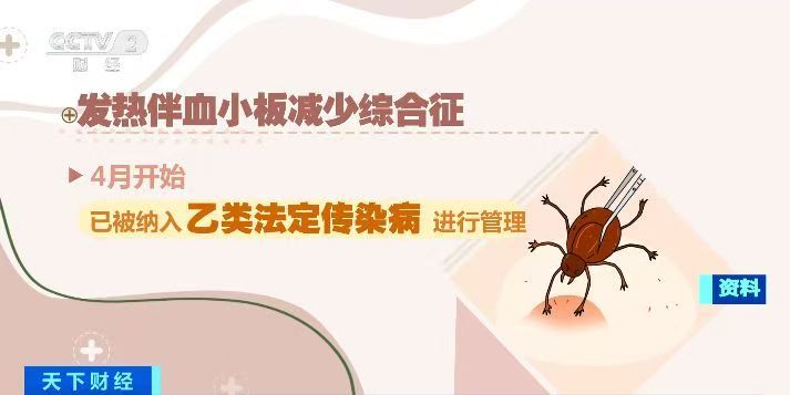国家疾控局明确,近年来发热伴血小板减少综合征报告病例的地区有所增加,携带病毒的蜱虫分布范围扩大,传播风险有所上升。从本月开始,发热伴血小板减少综合征已被纳入乙类法定传染病进行管理。