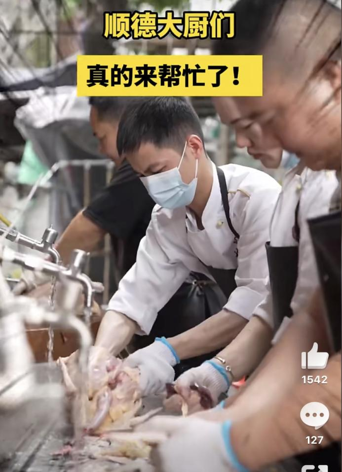 记者了解到,清明假期之后,莫氏鸡煲小店依然“大排长龙”,人气爆棚。之前有网友在评论区喊话顺德文旅“派人过来斩鸡”,当地文旅主打一“听劝”,真的派人过来帮手了。