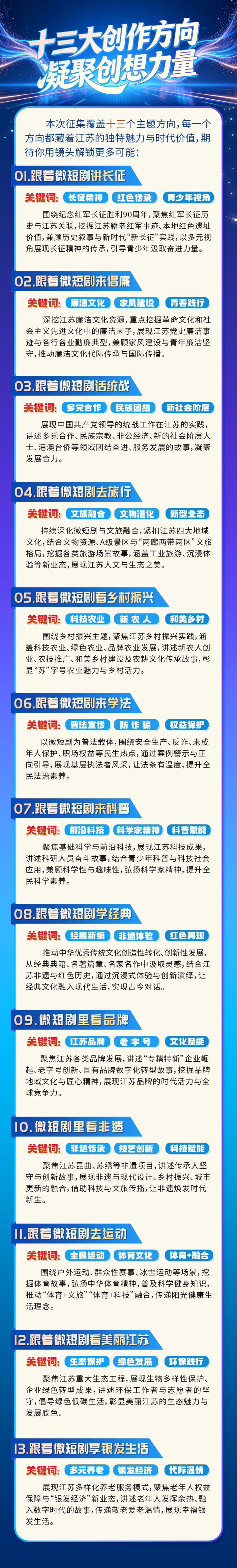 有关“微短剧+”主题创作方向具体内容可从江苏省广播电视局网站下载:网址http://jsgd.jiangsu.gov.cn/art/2026/3/25/art_91594_11749356.html