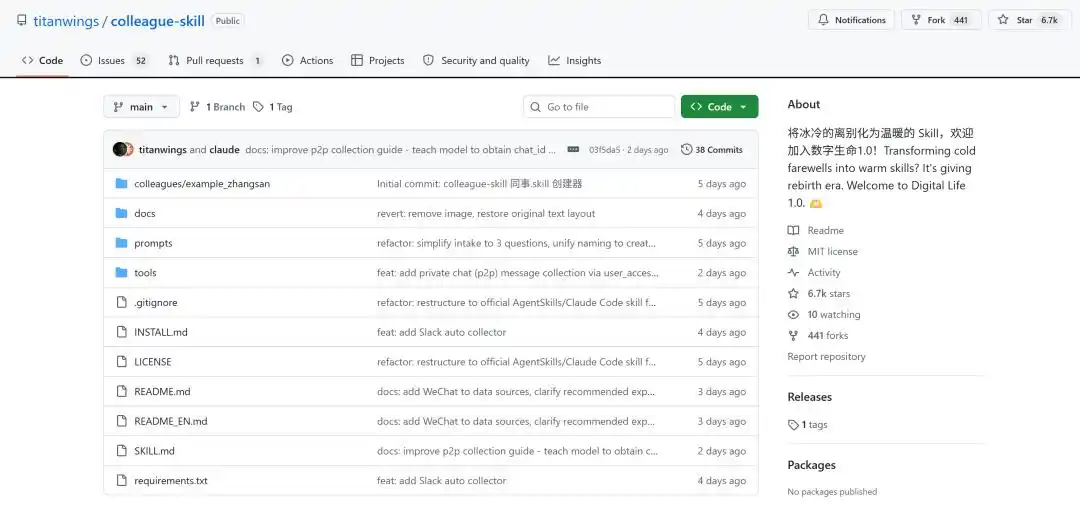 “同事.skill”是一位算法工程师开发的一款基于Claude Code的AI智能体(AI Agent)工具,可以收集离职员工的飞书消息、钉钉文档、工作邮件、聊天记录、文档、代码等数据,然后生成拥有与同事相同工作逻辑思维,乃至性格身份、表达风格、决策模式、说话方式和人际行为都相似的“数字同事”,以替代同事的工作。